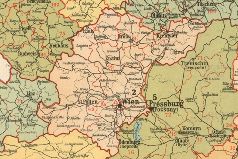 Detail der Karte der Territorialkommanden 1894, Korpsbereich 2 - Original Österreichisches Staatsarchiv- Beim Klick auf das Bild öffnet sich ein neues Fenster mit einer grösseren Darstellung des Bildes!