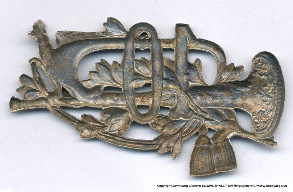 Gestanztes Kappenabzeichen "Ehrensignalhorn mit aufgelegter Bataillonsnummer" - Beim Klick auf das Bild öffnet sich ein neues Fenster mit einer grösseren Darstellung des Bildes!