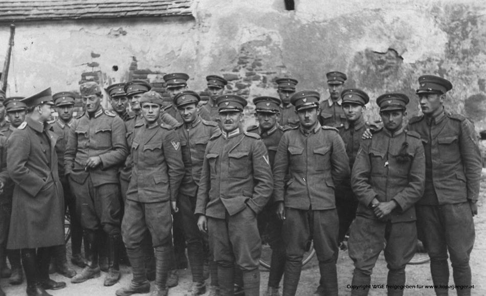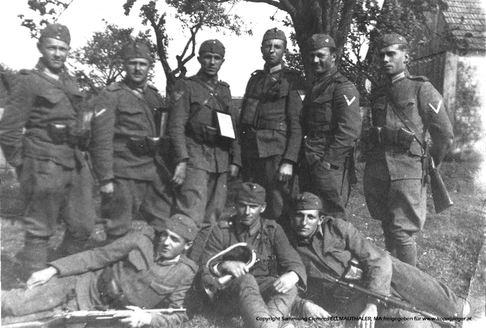 Manöver in LANG-MANNERSDORF 1931Die Fotos des Manövers im Jahr 1931 zeigt nicht nur die Verbundenheit der Jäger mit der Bevölkerung, sondern auch die Ausrüstung, welche eine bunte Mischung aus altösterreichischen und deutschen Uniformteilen zeigt. Fast immer im Hintergrund zu sehen die Fahrräder, welche nicht der Landbevölkerung gehörten sondern den Feldjägern.