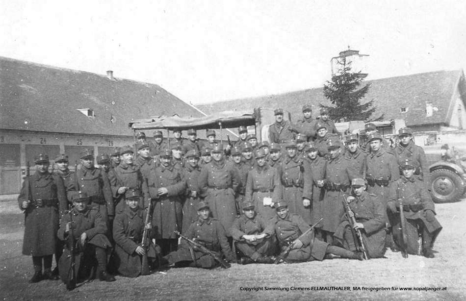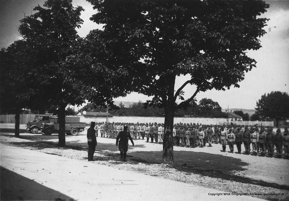 Stabswachtmeister Jungkreitmeier in der Mitte der Kameraden am Kasernenhof in STOCKERAU - Beim Klick auf das Bild öffnet sich ein neues Fenster mit einer grösseren Darstellung des Bildes!