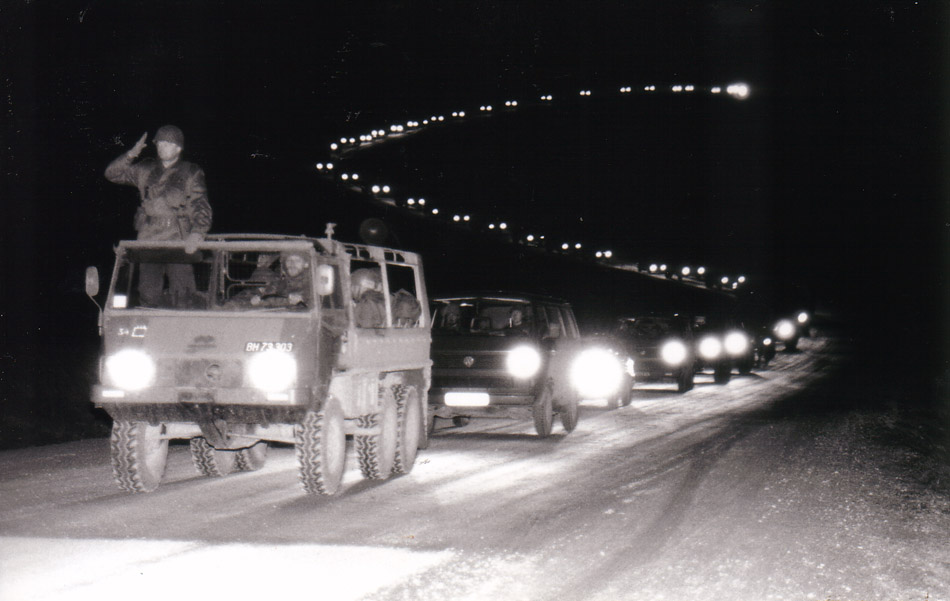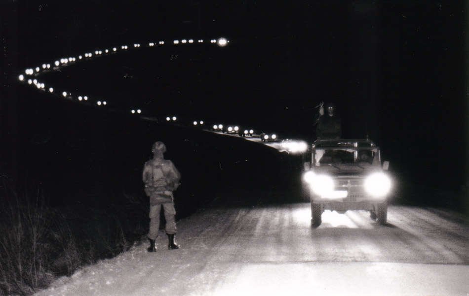 Der Kommandant der Stabskompanie CEPKO beim Passieren, noch einmal die eindrucksvolle Kolonne des Bataillons in der Nacht - Beim Klick auf das Bild öffnet sich ein neues Fenster mit einer grösseren Darstellung des Bildes!