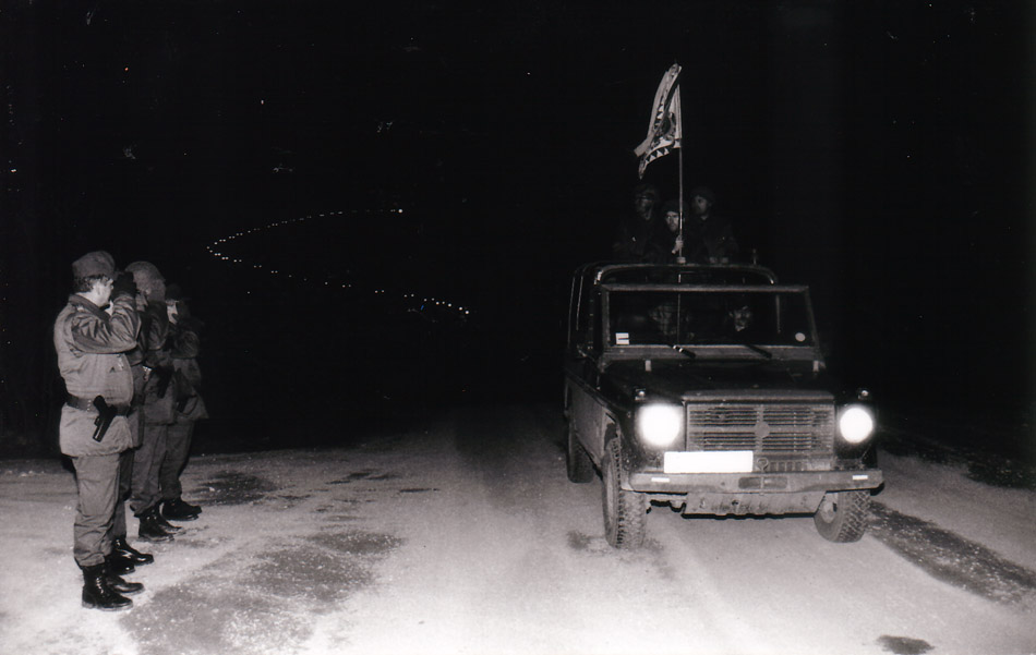 Nach der offiziellen und zeremoniellen Übergabe des Bataillons an das neue übergeordnete Kommando wurde in alter militärischer Tradition eine Feldparade vor dem Militärkommandanten und dem alten und neuen vorgesetzten Kommando durchgeführt. Eine stimmungsvolle und angesichts der Lichterkette auf der Panzerstraße in ALLENTSTEIG eindrucksvolle Erinnerung an die Zeiten, als Miliz-Jägerbataillone noch voll mit Mannschaft befüllt waren und als mobile Jägerbataillone auch noch eigene Kraftfahrer und auf Übungen die orgplanmäßigen Fahrzeuge hatten.