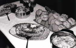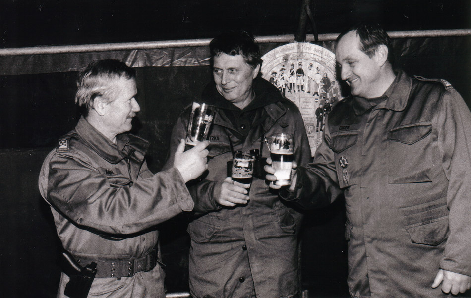 Das "Feldbuffet" und die "inoffizielle Übergabe" des Bataillons von Oberst KAHN an Oberst EGGER. Dazwischen Oberstleutnant Mag. MATZKA als Übergebener - Beim Klick auf das Bild öffnet sich ein neues Fenster mit einer grösseren Darstellung des Bildes!