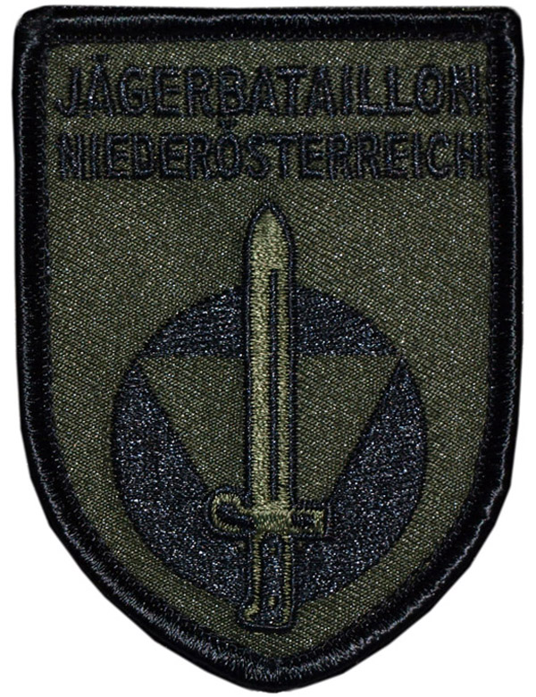 Gestickte Abzeichen mit Klettrücken für die Flauschflächen auf den Bekleidungsstücken des Kampfanzuges 03, zu tragen auf der Flauschfläche des rechten Oberarms (in Blickrichtung des Trägers) des obersten Kleidungsstückes. Das Truppenkörperabzeichen darf nur von Angehörigen des Jägerbataillons Niederösterreich getragen werden, solange sie zum Bataillon gehören.