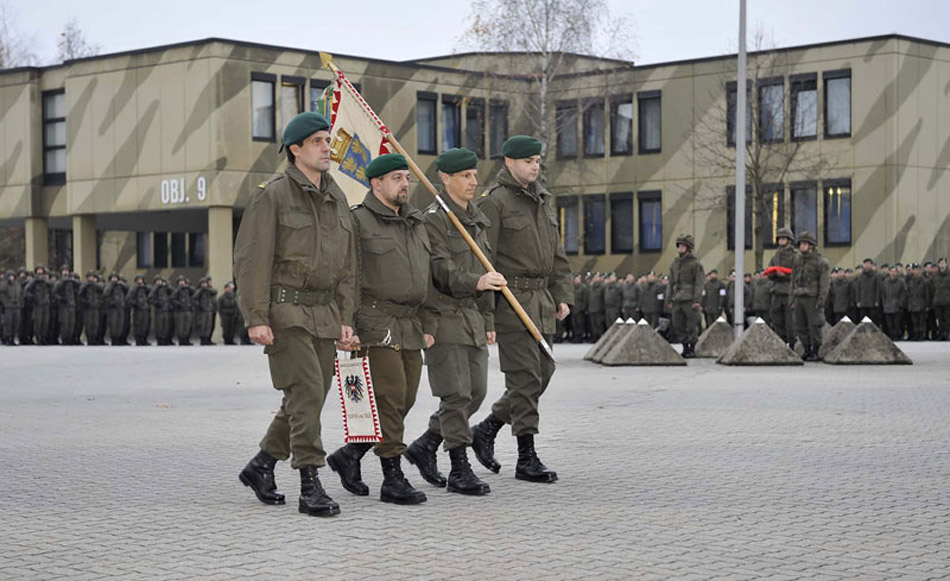 Einzug der Feldzeichen beim militärischen Festakt auf dem Antreteplatz der Kaserne AMSTETTEN - Beim Klick auf das Bild öffnet sich ein neues Fenster mit einer grösseren Darstellung des Bildes!