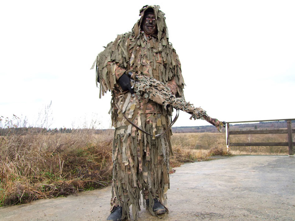 Scharfschütze des Jägerbataillons in Ghillie-Suit Version "A" in ALLENTSTEIG; Foto JgB NÖ, - Beim Klick auf das Bild öffnet sich ein neues Fenster mit einer grösseren Darstellung des Bildes!