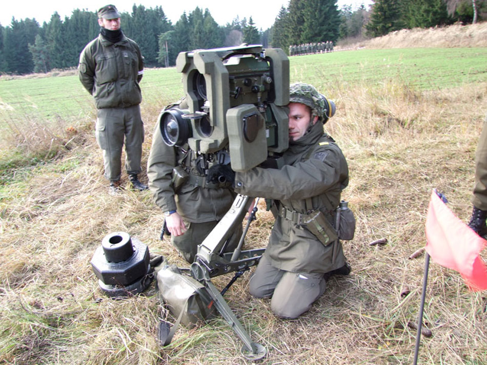 Panzerabwehrlenkwaffe in Feuerstellung für den scharfen Schuss am 20.11.2008 - im Hintergrund erkennbar der Zuseherraum mit angetretenen Zusehern; Foto JgB NÖ, - Beim Klick auf das Bild öffnet sich ein neues Fenster mit einer grösseren Darstellung des Bildes!