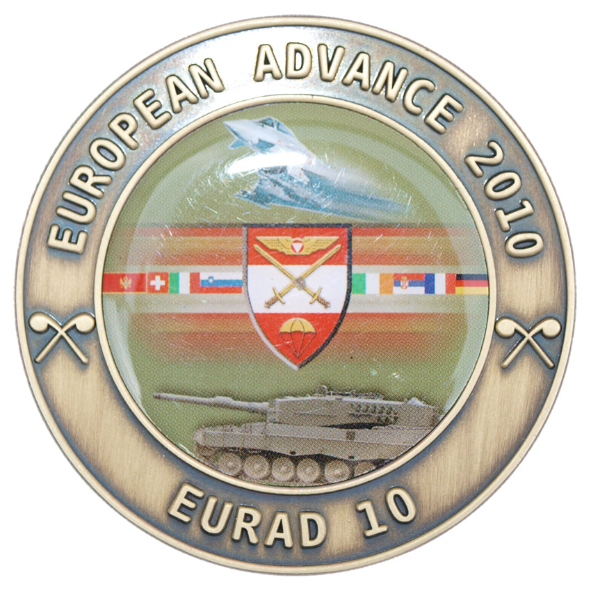Amerikanismen halten Einzug in Österreich: Erinnerungsmedaille Vorderseite und Rückseite sowie Teilnehmerurkunde der EURAD 2010 - Beim Klick auf das Bild öffnet sich ein neues Fenster mit einer grösseren Darstellung des Bildes!