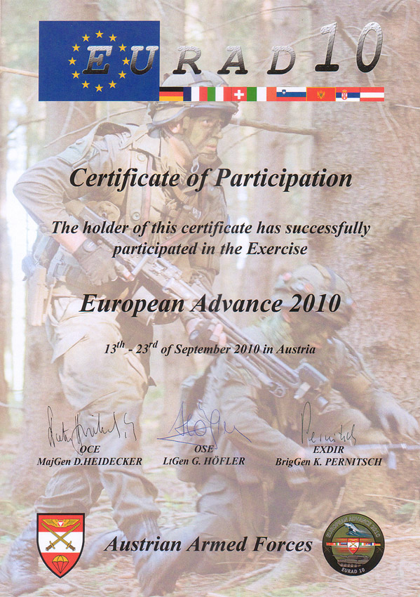 Im Frühling des Jahres 2010 begannen die Vorbereitungen des Bataillonsstabes des Jägerbataillon Niederösterreich mit einer Geländeerkundung in ALLENTSTEIG am 23. und 24. April auf die Milizübung im Herbst 2010. Da die Milizübung im Rahmen der internationalen Übung „European Advance 2010 – EURAD10“ stattfinden sollte, mussten diesmal mehr freiwillige Leistungen und unbezahlte Arbeitsstunden außerhalb der Freiwilligen Milizarbeit (FMA) als üblich geleistet werden, um den Übungserfolg sicherzustellen. Teilnahmen an den Stabsbesprechungen der 4. Jägerbrigade in KLAGENFURT als vorgesetztes Übungskommando für OPFOR (die Feinddarstellung für die eigentlich beübte 4. PzGrenBrig mit ihren multinationalen Anteilen als MFO") zählten dabei zu den geringsten Aufgaben.