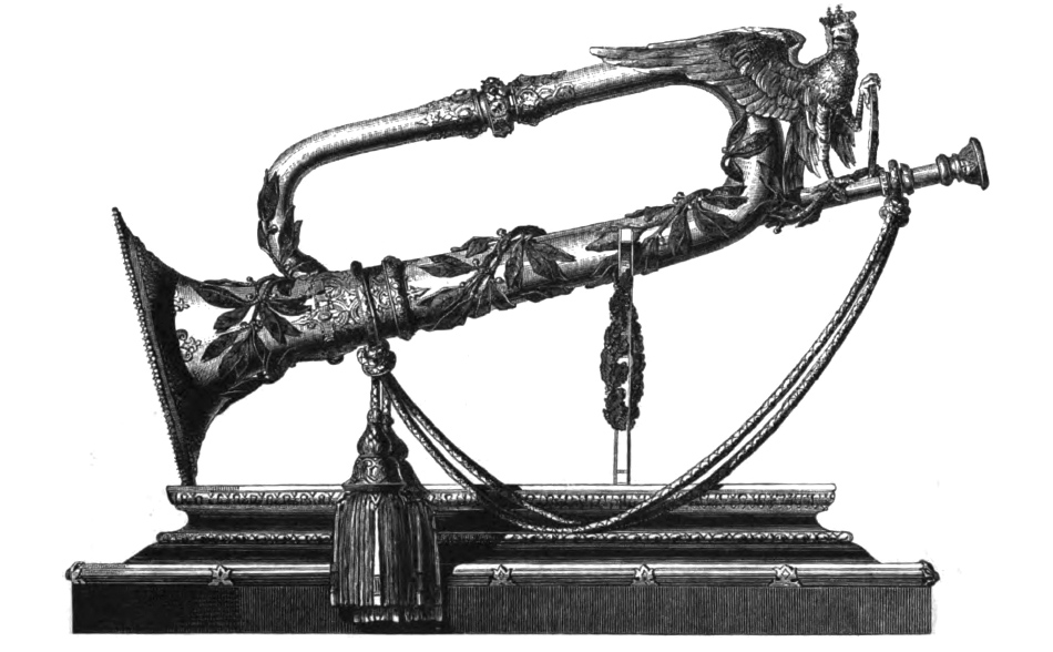 Die Trompete selbst ist aus der, durch ihre ausgezeichneten Leistungen bekannten Metallwaren-Fabrik des Herrn Joseph Glanz auf der Wieden hervorgegangen; an ihrer künstlerischen Vollendung haben die Herren Jupp und Hrdlitzka, Ersterer Werkführer, Letzterer Modelleur und Zeichner in gedachter Fabrik, wesentlichen Antheil.