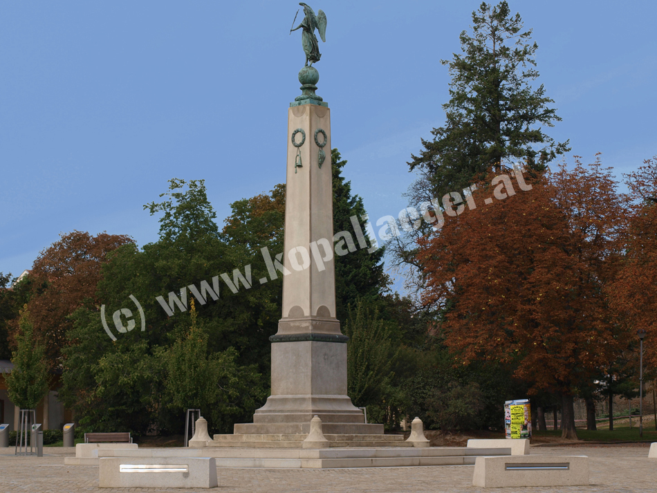 Das Kopal Denkmal nach der Restaurierung 2010 - NIKE-Statute von Anton FERNKORN, links die Westansicht von vorne, rechts die Rückansicht von Osten - Beim Klick auf das Bild öffnet sich ein neues Fenster mit einer grösseren Darstellung des Bildes!