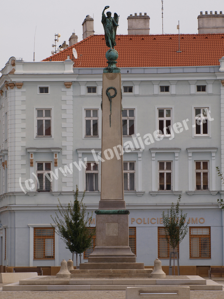 Das Kopal-Denkmal in ZNAIM im September 2012 von Süden (Studentská) aus gesehen. Koordinaten: 48°51'24.52"N - 16°03'08.66"E (UTM GRID: 33U WQ 77195 12072) - Beim Klick auf das Bild öffnet sich ein neues Fenster mit einer grösseren Darstellung des Bildes!