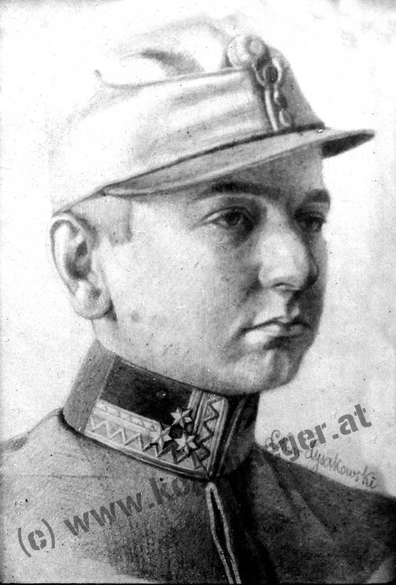 [8] Am Kriegsbeginn 1914 Oberleutnant der 4. Kompanie, nach dem Gefecht bei KOTOWICE am 14. November 1914 musste er die Kompanie übernehmen, gefallen am 26. Juli 1915 südlich SOKAL